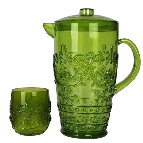 Embossed Insignia Acrylic Tableware Pitcher and Glass
